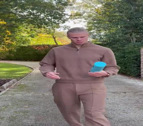 哈兰德整活展示英超9月最佳球员奖杯:适合散步的好天气